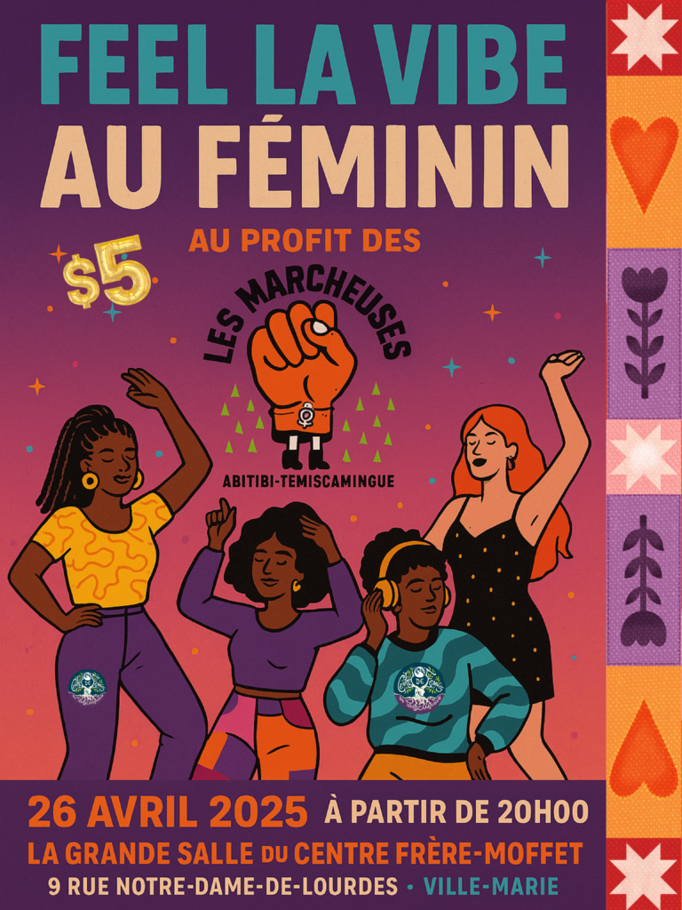Le Centre de Femmes est un organisme engagé dans la communauté qui offre de l’animation et des ateliers mobiles afin d’en faire bénéficier les femmes sur l’ensemble du territoire témiscamien. Ceux-ci sont en mouvement selon le besoin des femmes. Au cœur de chaque activité, il y a une valorisation des connaissances et de l’expérience que les femmes tirent de leur vécu. Pour donner l’occasion aux femmes de voir et de faire autrement. Les ateliers peuvent se dérouler de jour, de soir et de fin de semaine, on s’adapte à vos disponibilités.