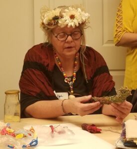 De plus, 2 ateliers de créations étaient proposés, soit un ayant pour but d’écrire une lettre d’amour à la sorcière en elle, animé par Anita Huser et un autre animé par Josée Lefebvre, notre sorcière aguerrie au Centre de Femmes, permettant aux participantes de concevoir des amulettes avec des herbes fraichement cueillies du jardin de l’animatrice.